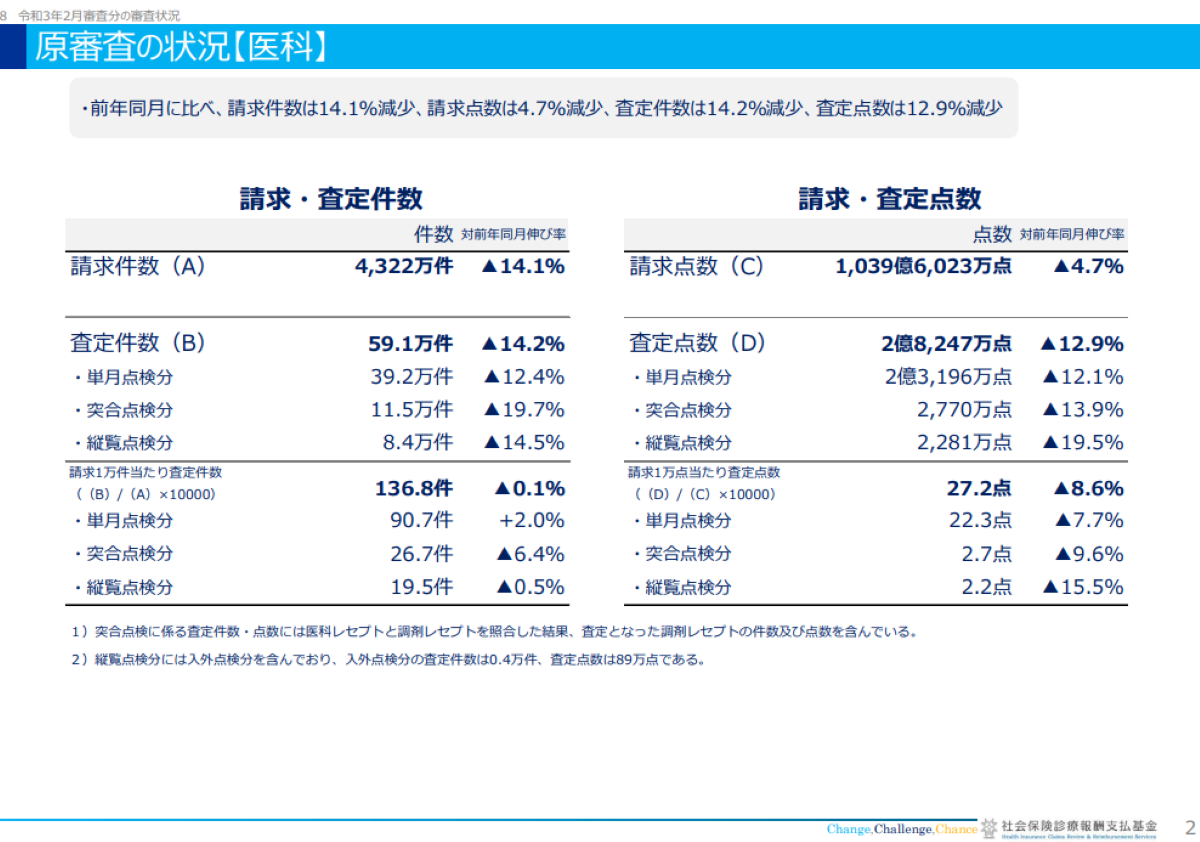下記の”請求1万点あたりの査定点数”から査定率が0.272%ということがわかります。貴院の査定率が高い場合は、どこに問題があるのか調べて対策する必要があります。